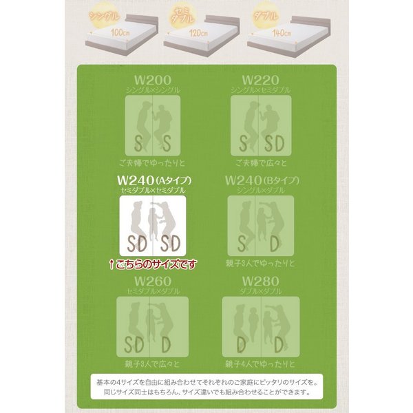 kag-44294 連結ベッド 幅240 キング ワイド 3人 4人 家族 つなげる 2台 分割 ファミリー 親子 マットレス付き ローベッド 低い 宮 棚 携帯 収納 コンセント スマホ 充電