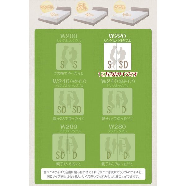 kag-44302 連結ベッド 幅220 キング ワイド 3人 4人 家族 つなげる 2台 分割 ファミリー 親子 マットレス付き ローベッド 低い 宮 棚 携帯 収納 コンセント スマホ 充電