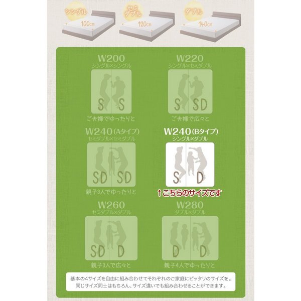 kag-44322 連結ベッド 幅240 キング ワイド 3人 4人 家族 つなげる 2台 分割 ファミリー 親子 マットレス付き ローベッド 低い 宮 棚 携帯 収納 コンセント スマホ 充電