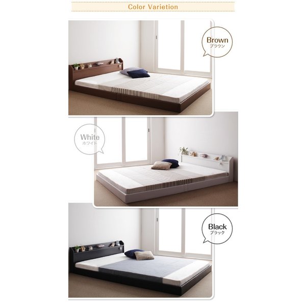 kag-44980 連結ベッド 幅200 キング ワイド 3人 4人 家族 つなげる 2台 分割 ファミリー マットレス付 ロー 低い ロング 棚 携帯 収納 照明 ライト コンセント スマホ 充電