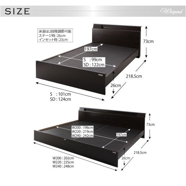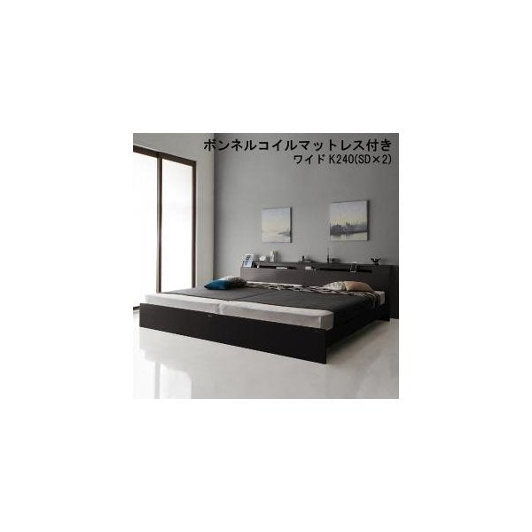 kag-45030 連結ベッド 幅240 キング ワイド 3人 4人 家族 つなげる 2台 連結 分割 ファミリー マットレス付き セット 宮 棚 携帯 収納 照明 ライト コンセント スマホ 充電