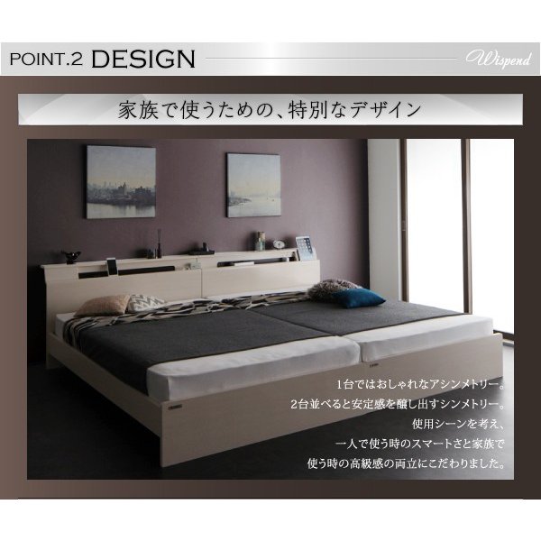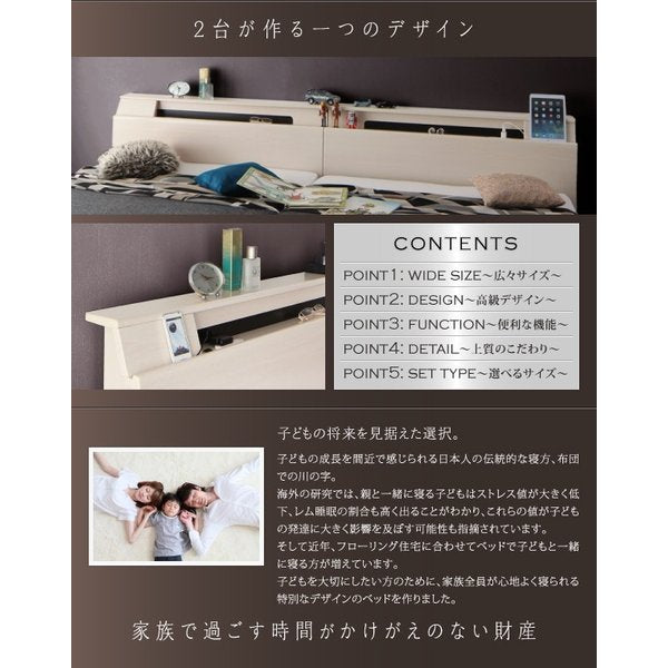 kag-45051 連結ベッド 幅200 キング ワイド 3人 4人 家族 つなげる 2台 連結 分割 ファミリー マットレス付き セット 宮 棚 携帯 収納 照明 ライト コンセント スマホ 充電