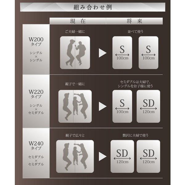 kag-45052 連結ベッド 幅240 キング ワイド 3人 4人 家族 つなげる 2台 連結 分割 ファミリー マットレス付き セット 宮 棚 携帯 収納 照明 ライト コンセント スマホ 充電