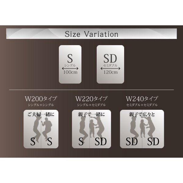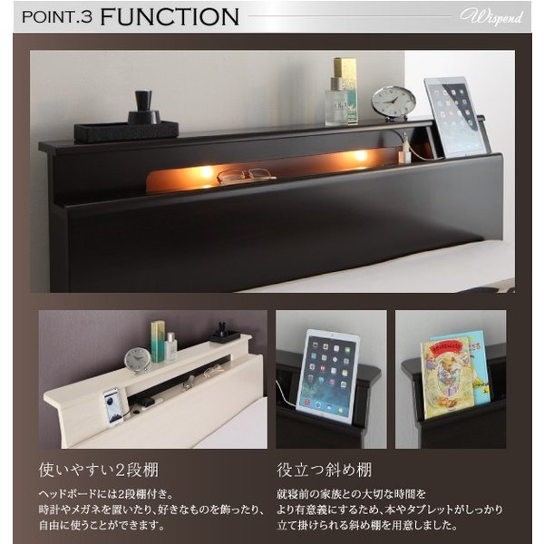 kag-45059 連結ベッド 幅200 キング ワイド 3人 4人 家族 つなげる 2台 連結 分割 ファミリー マットレス付き セット 宮 棚 携帯 収納 照明 ライト コンセント スマホ 充電