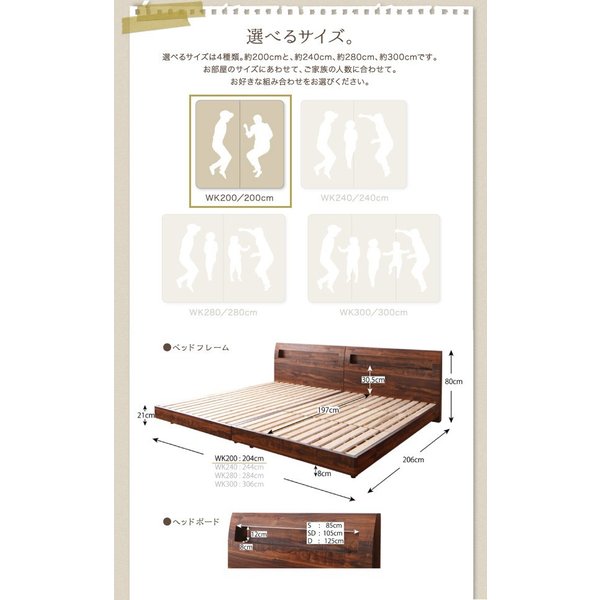 連結ベッド 幅200 キング ワイド 2人 3人 4人 家族 つなげる 2台 連結 分割 ファミリー 親子 マットレス付き ローベッド ロータイプ フロア 低床 低い 宮付き ヘッドボード 枕元 棚 ラック 携帯置き ティッシュ置き メガネ置き リモコン 頭上 収納 コンセント ゲーム ケーブル スマホ 充電 電気 布団 直置き マットレス不要 すのこ 通気性 除湿 カビ 脚付き 足付 ルンバ 土台 北欧 おしゃれ モダン アンティーク