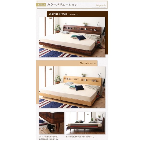 kag-45219 連結ベッド 幅240 キング ワイド 3人 4人 家族 つなげる 2台 分割 ファミリー マットレス付 ロー 低い 棚 携帯 収納 コンセント スマホ すのこ 通気性 脚 北欧