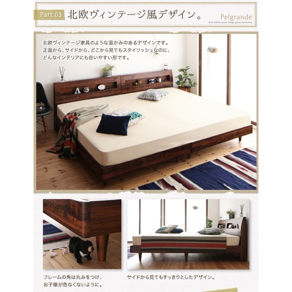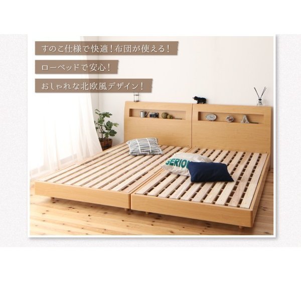 kag-45228 連結ベッド 幅200 キング ワイド 3人 4人 家族 つなげる 2台 分割 ファミリー マットレス付 ロー 低い 棚 携帯 収納 コンセント スマホ すのこ 通気性 脚 北欧