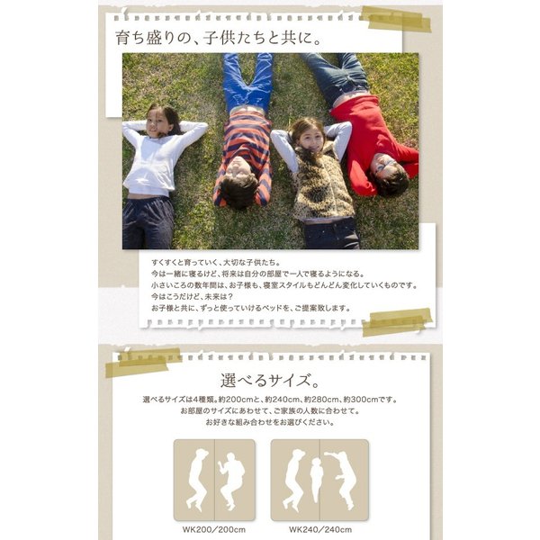 WK240:幅244x長さ206x高さ80cm(セミダブルx2、シングル+ダブル)