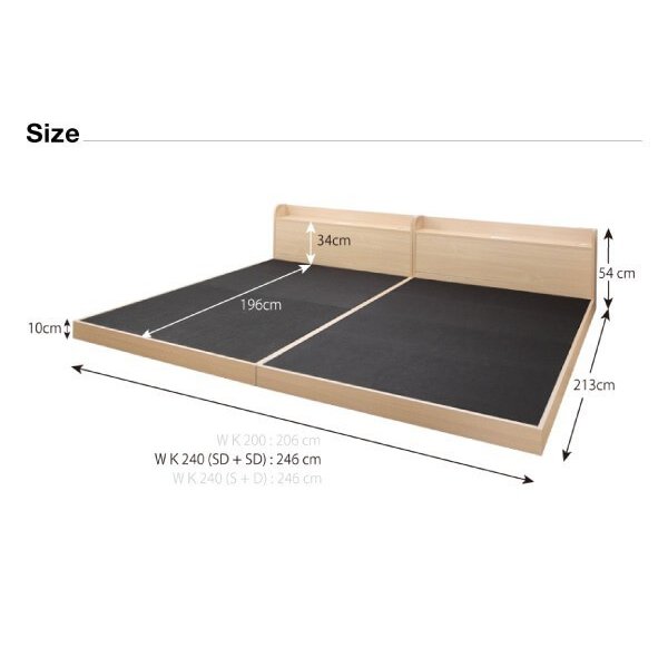 kag-45289 連結ベッド 幅240 キング ワイド 3人 4人 家族 つなげる 2台 分割 ファミリー 敷布団付き ロー 低い 宮 棚 携帯 収納 コンセント スマホ 充電 布団可