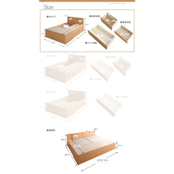 Aタイプ:浅型引き出し/55×38×12cm、深型引き出し/55×38×26cm、フット引き出しS:89×59×22cm、SD:108×59×22cm