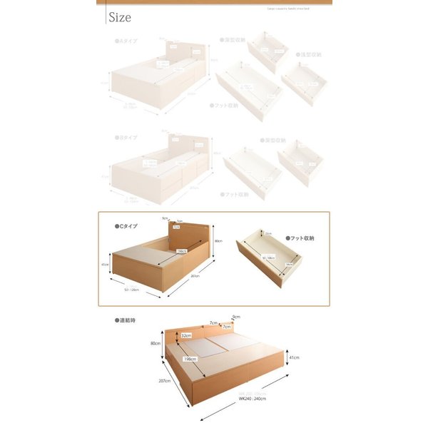 Aタイプ:浅型引き出し/55×38×12cm、深型引き出し/55×38×26cm、フット引き出しS:89×59×22cm、SD:108×59×22cm