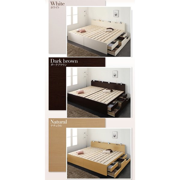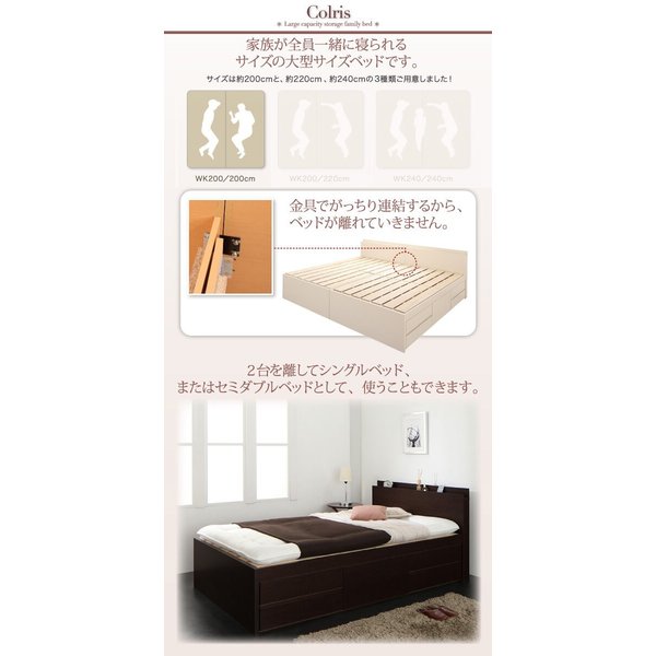 kag-45521 連結ベッド 幅200 キング ワイド 3人 4人 家族 つなげる 2台 分割 ファミリー フレーム チェスト 収納 引き出し 棚 携帯 コンセント スマホ すのこ 通気性 カビ