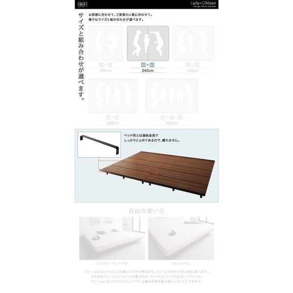 kag-45530 連結ベッド 幅240 キング ワイド 3人 4人 家族 つなげる 2台 連結 分割 ファミリー フレーム ロー 低い ロング ヘッドレス 布団可 脚 足 北欧 おしゃれ