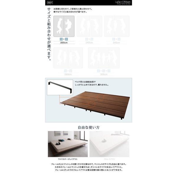 連結ベッド キング ワイド 2人 3人 4人 家族 つなげる 2台 連結 分割 ファミリー 親子 マットレス付き ローベッド ロータイプ フロア 低床 低い ヘッドレス ヘッドボードなし 布団 直置き マットレス不要 フラット床板 土台 脚付き 足付 ルンバ 北欧 おしゃれ モダン アンティーク