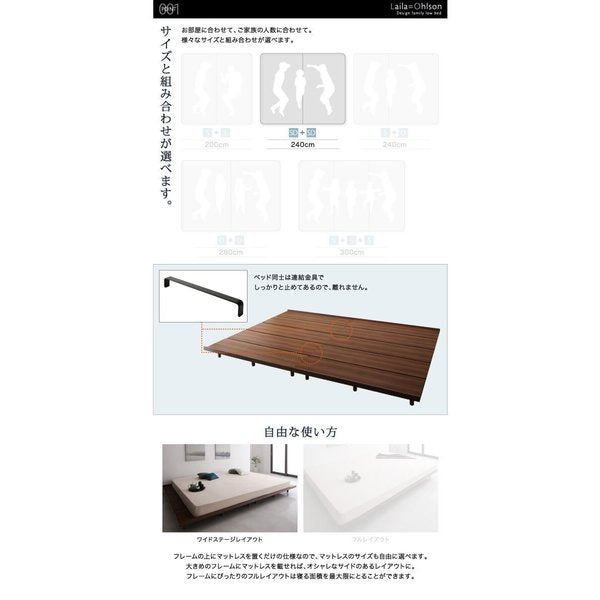 連結ベッド キング ワイド 2人 3人 4人 家族 つなげる 2台 連結 分割 ファミリー 親子 マットレス付き ローベッド ロータイプ フロア 低床 低い ヘッドレス ヘッドボードなし 布団 直置き マットレス不要 フラット床板 土台 脚付き 足付 ルンバ 北欧 おしゃれ モダン アンティーク
