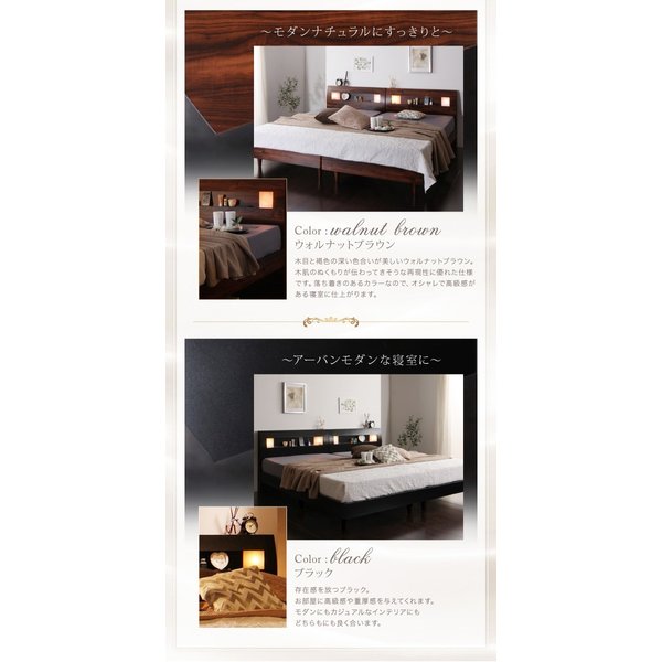 kag-47052 連結ベッド 幅200 キング ワイド 3人 4人 家族 つなげる 2台 分割 ファミリー マットレス付 ロー 低い 棚 携帯 収納 照明 ライト コンセント スマホ すのこ 脚