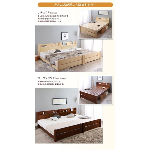 kag-49033 連結ベッド 幅240 キング ワイド 3人 4人 家族 つなげる 2台 分割 ファミリー フレーム ロー 低い 高さ調節 棚 携帯 収納 スマホ コンセント すのこ 通気性 カビ