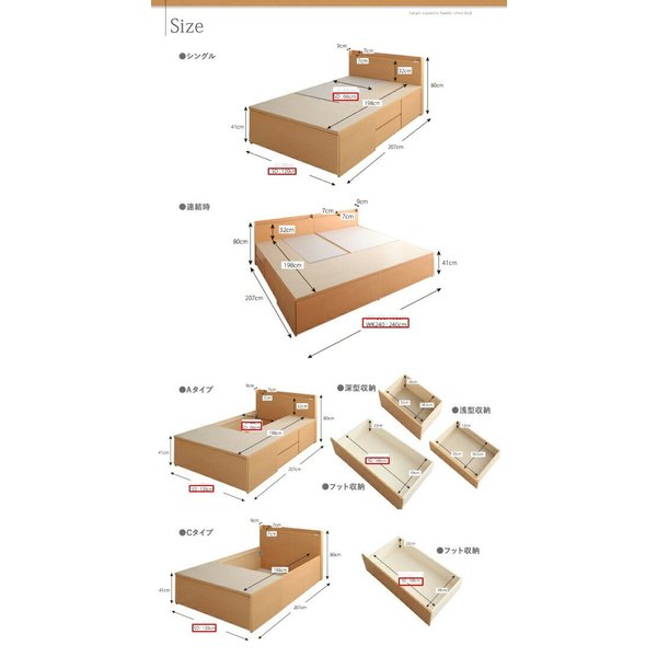 Aタイプ:浅型引き出し/55×38×12cm、深型引き出し/55×38×26cm、フット引き出しS:89×59×22cm、SD:108×59×22cm