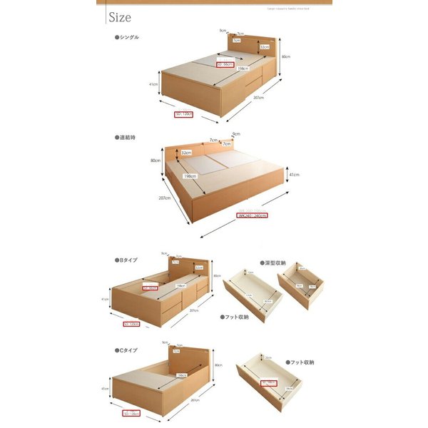 Aタイプ:浅型引き出し/55×38×12cm、深型引き出し/55×38×26cm、フット引き出しS:89×59×22cm、SD:108×59×22cm