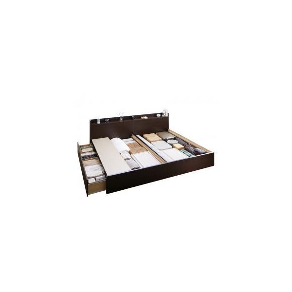 kag-51519 連結ベッド 幅200 キング ワイド 3人 4人 家族 つなげる 2台 分割 ファミリー フレーム チェスト 引き出し 高い 床下収納 全面収納 棚 携帯 コンセント スマホ