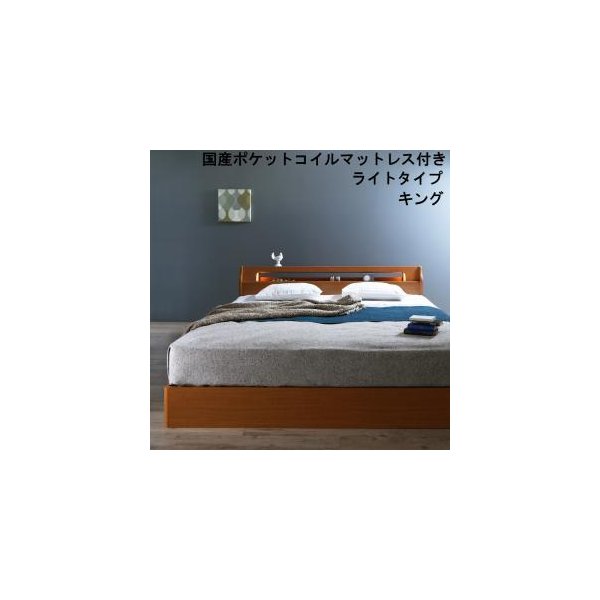 kag-51671 キングベッド 家族 ファミリー 親子 ワイド マットレス付き チェスト ベッド下 収納 引き出し 大容量 宮 棚 携帯 照明 読書 ライト コンセント スマホ 充電