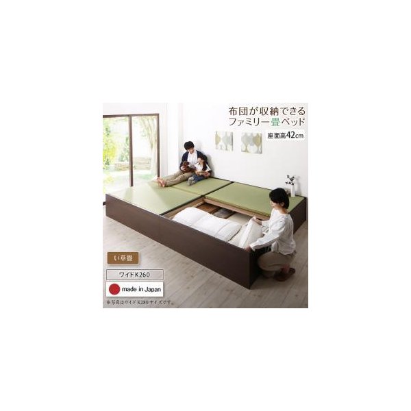 連結ベッド 幅260 キング ワイド 2人 3人 4人 家族 つなげる 2台 連結 分割 ファミリー 親子 フレームのみ 日本製 国産 畳ベッド 硬め 布団対応 布団用 腰痛対策 通気性 除湿 カビ 湿気 和室 フラット床板 土台 箱型 ベッド下収納 収納付き 大容量 高い 床下収納スペース 全面収納 ヘッドレス ヘッドボードなし 布団 直置き マットレス不要 布団収納 アジアン 和モダン