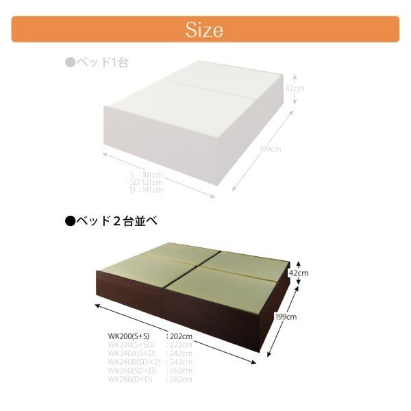 連結ベッド 幅200 キング ワイド 2人 3人 4人 家族 つなげる 2台 連結 分割 ファミリー 親子 フレームのみ 日本製 国産 畳ベッド 硬め 布団対応 布団用 腰痛対策 通気性 除湿 カビ 湿気 和室 フラット床板 土台 箱型 ベッド下収納 収納付き 大容量 高い 床下収納スペース 全面収納 ヘッドレス ヘッドボードなし 布団 直置き マットレス不要 布団収納 アジアン 和モダン
