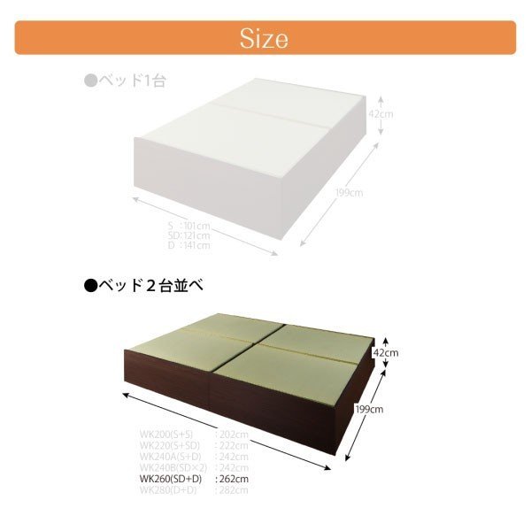 連結ベッド 幅260 キング ワイド 2人 3人 4人 家族 つなげる 2台 連結 分割 ファミリー 親子 フレームのみ 日本製 国産 畳ベッド 硬め 布団対応 布団用 腰痛対策 通気性 除湿 カビ 湿気 和室 フラット床板 土台 箱型 ベッド下収納 収納付き 大容量 高い 床下収納スペース 全面収納 ヘッドレス ヘッドボードなし 布団 直置き マットレス不要 布団収納 アジアン 和モダン