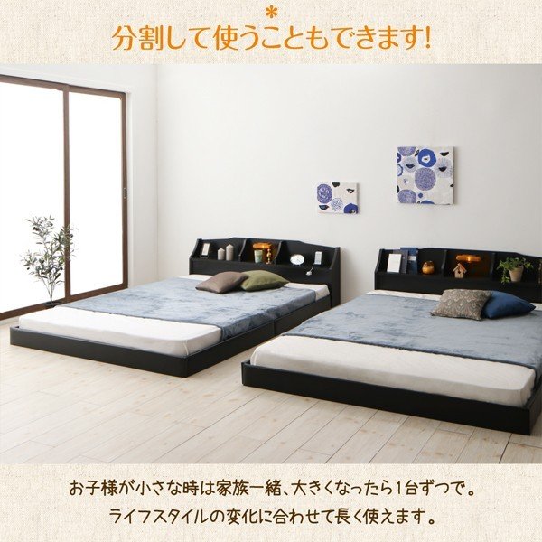 kag-51865 連結ベッド 幅240 キング ワイド 3人 4人 家族 つなげる 2台 分割 ファミリー マットレス付き ロー 低い 宮 棚 携帯 収納 照明 ライト コンセント スマホ 充電