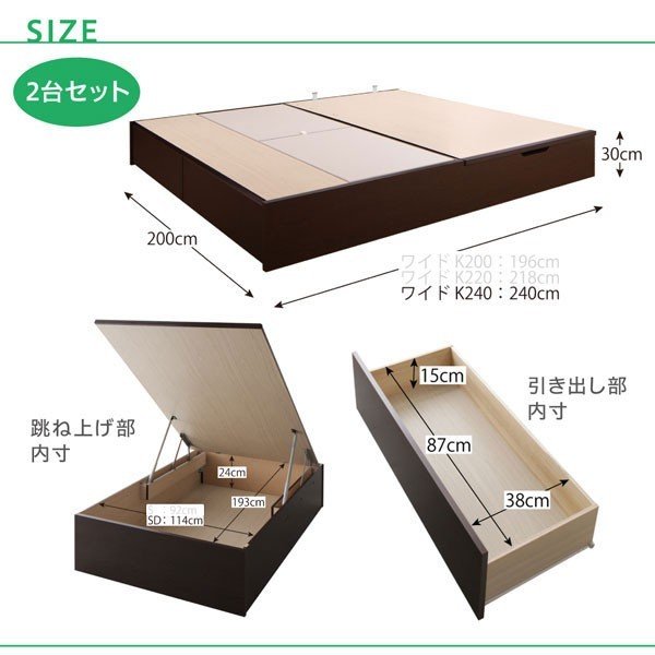 kag-51920 連結ベッド 幅240 キング ワイド 3人 4人 家族 つなげる 2台 連結 分割 ファミリー フレーム チェスト 収納 引き出し 跳ね上げ式 ガス圧 ベッド下 ヘッドレス