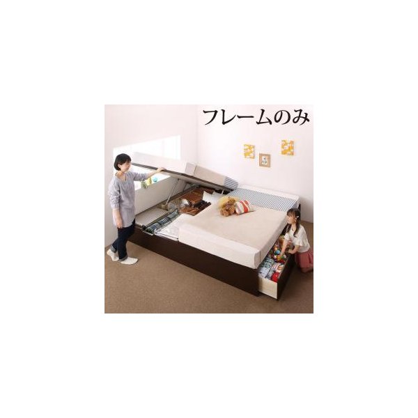 kag-51950 連結ベッド 幅220 キング ワイド 3人 4人 家族 つなげる 2台 連結 分割 ファミリー フレーム チェスト 収納 引き出し 跳ね上げ式 ガス圧 ベッド下 ヘッドレス