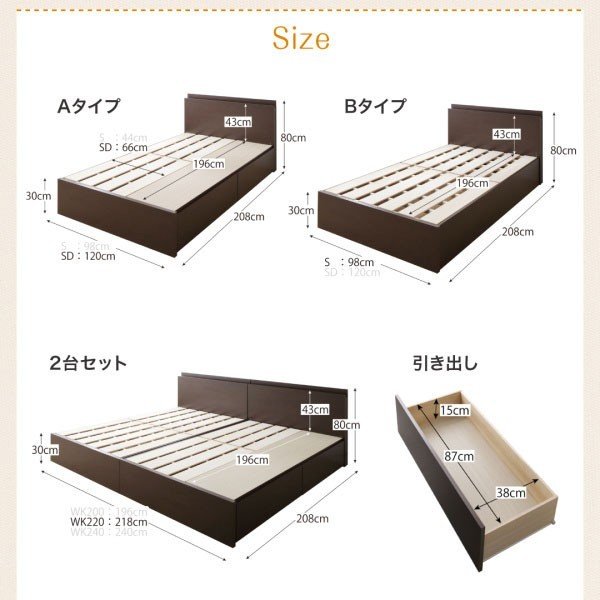 kag-52237 連結ベッド 幅220 キング ワイド 3人 4人 家族 つなげる 2台 分割 ファミリー マットレス付 チェスト 引き出し 高い 床下 収納 全面 棚 携帯 コンセント スマホ