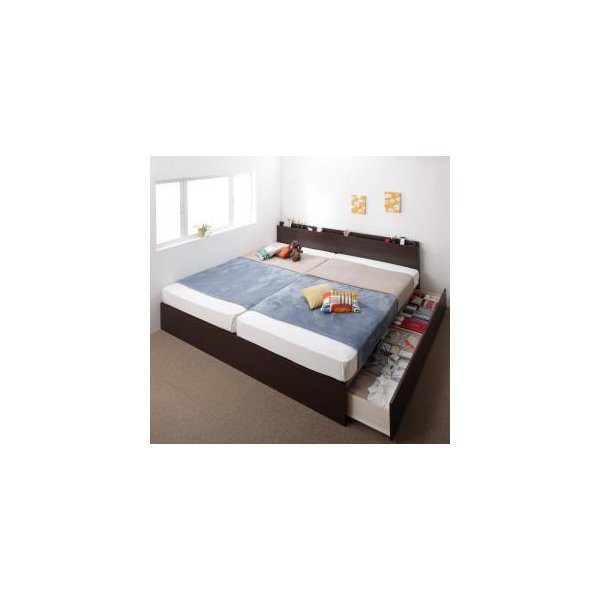 kag-52317 連結ベッド 幅220 キング ワイド 3人 4人 家族 つなげる 2台 分割 ファミリー マットレス付 チェスト 引き出し 高い 床下 収納 全面 棚 携帯 コンセント スマホ