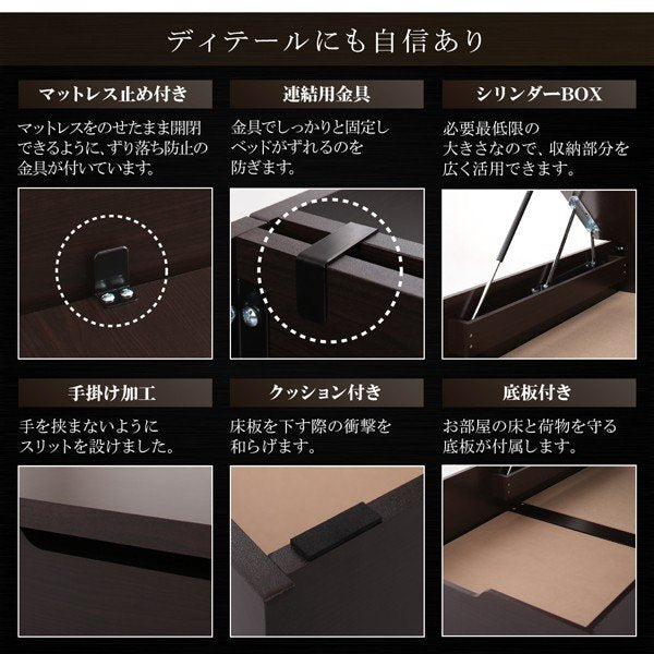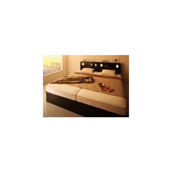 kag-53029 連結ベッド キング ワイド 3人 4人 家族 つなげる 2台 分割 ファミリー マットレス付 跳ね上げ式 ガス圧 ベッド下 収納 棚 携帯 照明 ライト コンセント スマホ