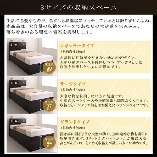 <床面高さ>(約)レギュラー:30cm、ラージ:37cm、グランド:44cm