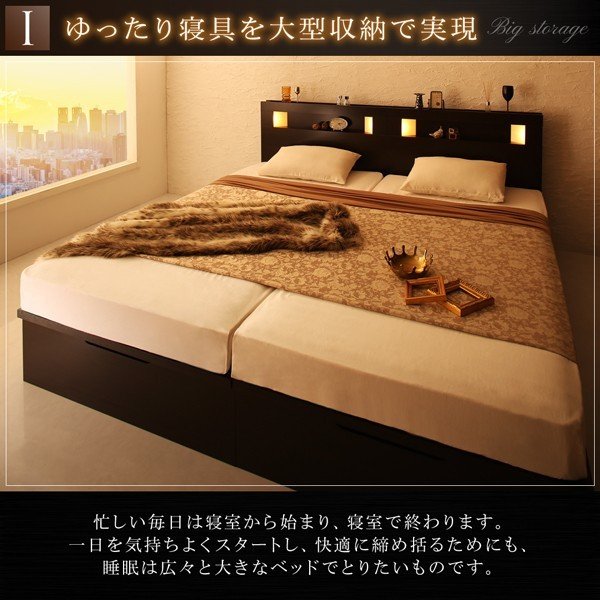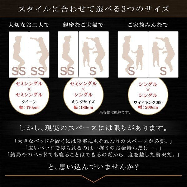 kag-53041 連結ベッド キング ワイド 3人 4人 家族 つなげる 2台 分割 ファミリー マットレス付 跳ね上げ式 ガス圧 ベッド下 収納 棚 携帯 照明 ライト コンセント スマホ