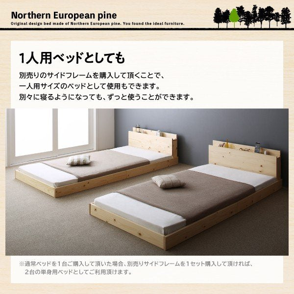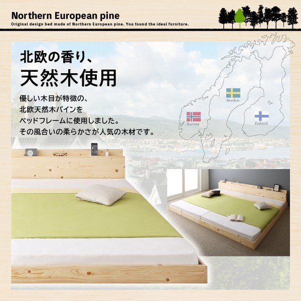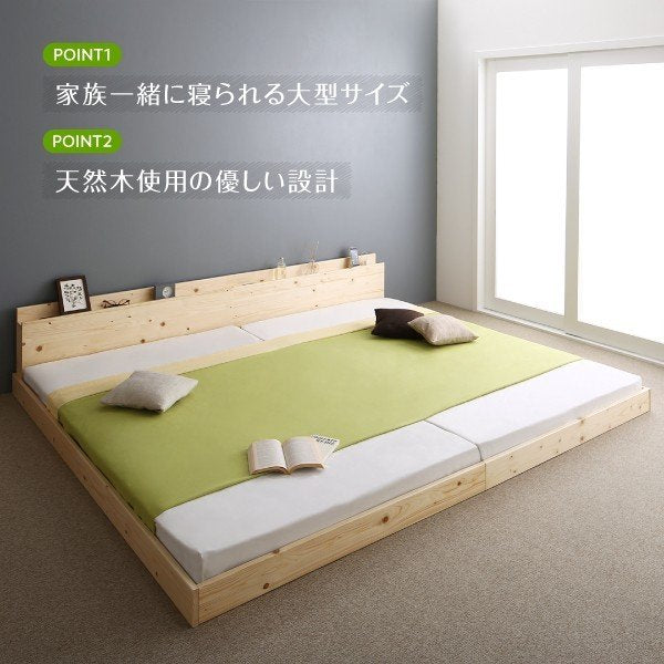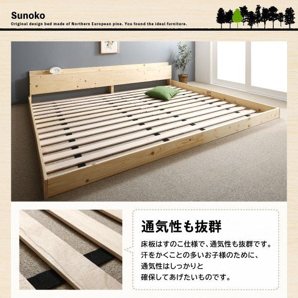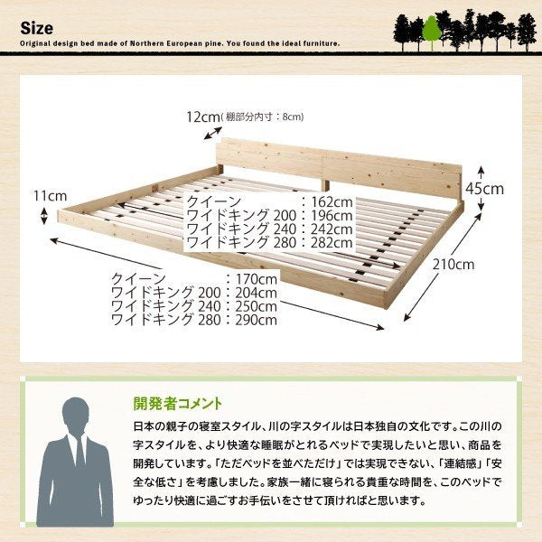 kag-54201 キングベッド 幅240 ワイド 2人 3人 4人 家族 ファミリー 親子 マットレス付 ロー 低い 棚 携帯 収納 携帯 スマホ コンセント すのこ 通気性 カビ 北欧 おしゃれ