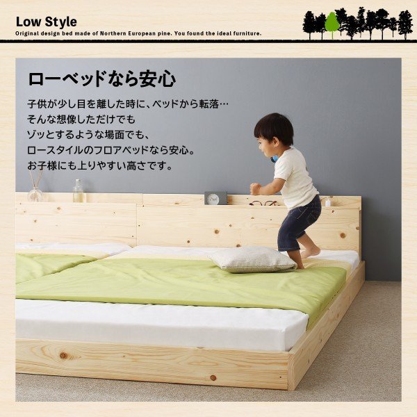 キング ベッド 幅240 ワイド 2人 3人 4人 家族 ファミリー 親子 マットレス付き ローベッド ロータイプ フロア 低床 低い 宮付き ヘッドボード 枕元 棚 ラック 携帯置き ティッシュ置き メガネ置き リモコン 頭上 収納 携帯 ゲーム スマホ 充電 電気 コンセント すのこ 通気性 除湿 カビ 北欧 おしゃれ モダン アンティーク