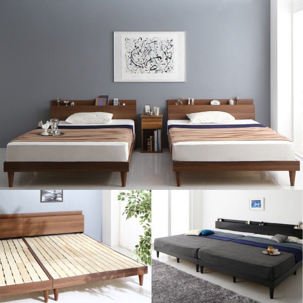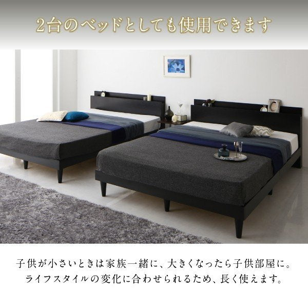kag-54418 連結ベッド 幅280 キング ワイド 3人 4人 家族 つなげる 2台 分割 ファミリー マットレス付 ロー 低い 棚 携帯 収納 コンセント スマホ 布団可 すのこ 通気性 脚