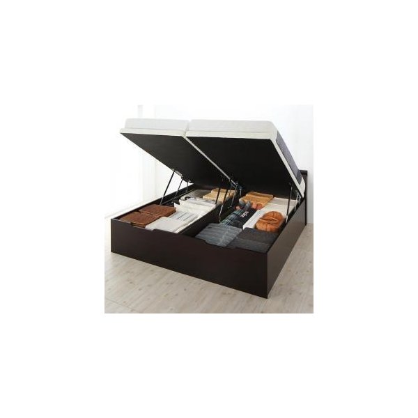 kag-52650 連結ベッド クイーン 2人 3人 家族 つなげる 2台 分割 ファミリー マットレス付 跳ね上げ式 ガス圧 ベッド下 収納 棚 携帯 コンセント スマホ すのこ 通気性