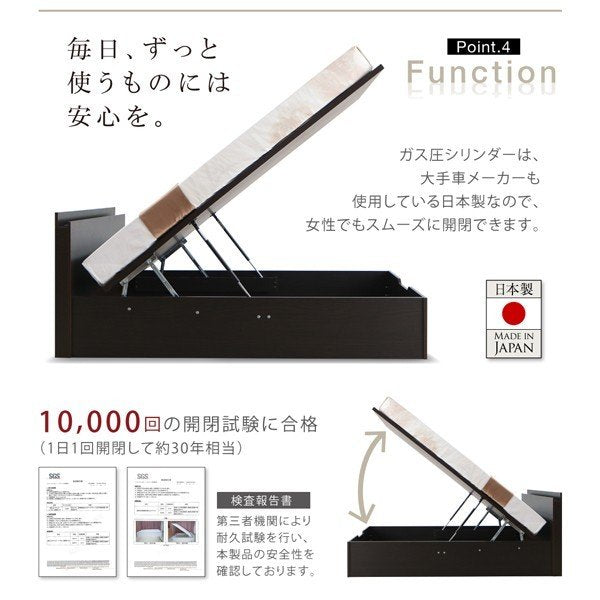kag-52829 連結ベッド クイーン 2人 3人 家族 つなげる 2台 連結 分割 ファミリー マットレス付 跳ね上げ式 ガス圧 ベッド下 収納 大容量 棚 携帯 コンセント スマホ 充電