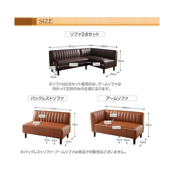 kag-31918 コーナーソファー コーナーソファ L字 2人掛け 二人掛け+肘付 ベンチ レザー カウチソファー 2点(ソファ1脚+肘付1脚)2P+2P