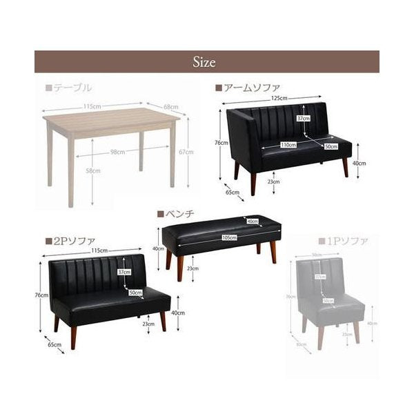 当商品は3点(2Pソファ1脚+肘ソファ1脚+ベンチ1脚)右肘