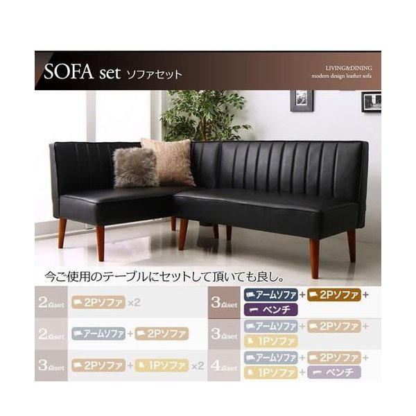 kag-31938 コーナーソファー コーナーソファ L字 l型 レザーソファー カウチソファー( 3点(2Pソファ1脚+肘ソファ1脚+ベンチ1脚)右肘 )