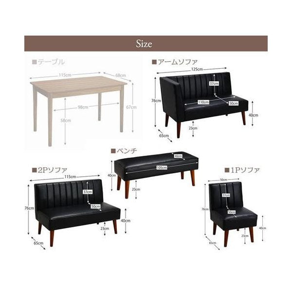 当商品は4点(2Pソファ1+肘ソファ1+1Pソファ1+ベンチ1)右肘