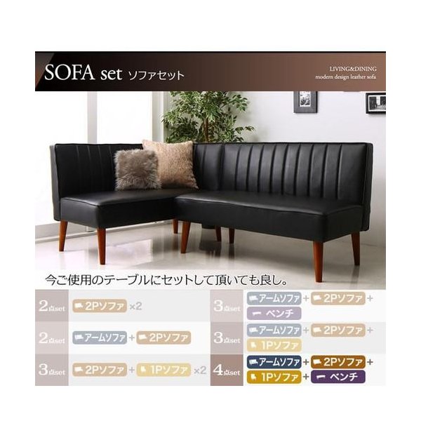 kag-31942 コーナーソファー コーナーソファ L字 レザー カウチソファー 4点(2Pソファ1脚+アーム肘1脚+1Pソファ1脚+ベンチ1脚)右肘)
