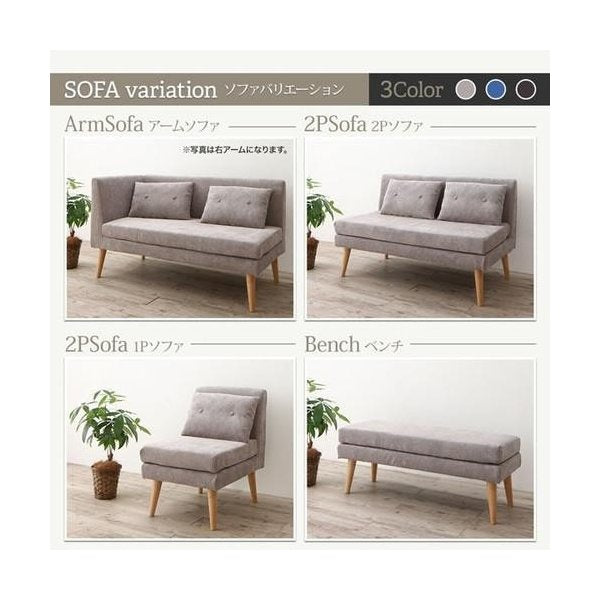 当商品は4点(2Pソファ1+肘ソファ1+1Pソファ1+ベンチ1)右肘