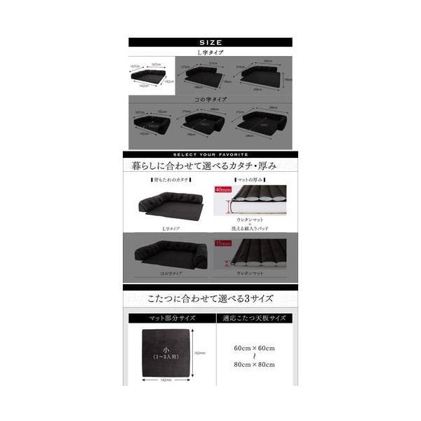 kag-33700 コーナーソファー コーナーソファ ソファ L字 ラグマット ローソファー こたつ敷布団 こたつマット ( マット部 142×142 厚さ4 )