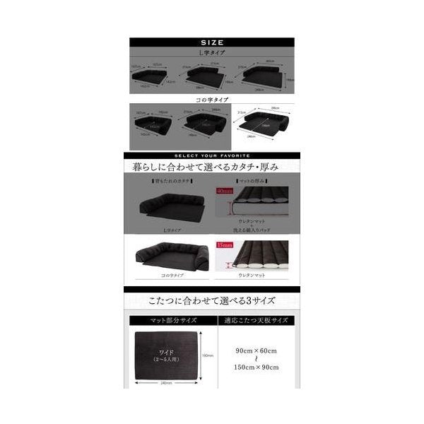 kag-33709 コーナーソファー コーナーソファ コの字 L字 ラグマット ローソファー こたつ敷布団 こたつマット (マット190×237 厚さ1.5)