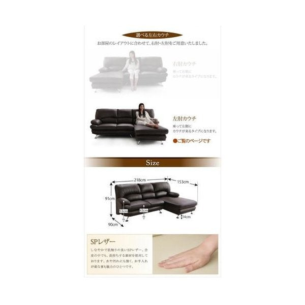 kag-34608 コーナーソファーL字 l型 3人掛け レザー 革 合皮 ( 左カウチ スチール脚 ) ハイバック ヘッドレスト 脚 モダン クール スタイリッシュ デザイナーズ 高級
